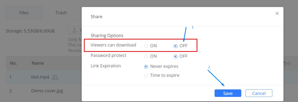 4- قم بعمل off لقسم التحميل ثم احفظ الاعدادات كما بالصورة